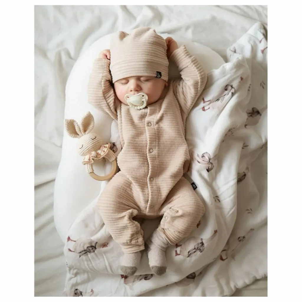 - Notre anneau de dentition Bonnie the Bunny soulagera les gencives douloureuses de votre bébé pendant la phase de dentition. Cet adorable jouet sera un compagnon idéal pour votre enfant ! Fabriqué avec soin à la main à partir de coton biologique certifié GOTS. Nos produits sont fabriqués avec amour par des artisans talentueux qui utilisent des techniques traditionnelles. Chaque pièce est vraiment unique et porte l’individualité de l’artisan qui l’a fabriquée. Tous nos jouets sont sans danger pour les peaux sensibles. Conçu en Norvège Fabriqué à la main de manière éthique en Turquie – 100% coton biologique – Hypoallergénique et naturellement antibactérien – Teintures éco-responsables et non toxiques – Rembourrage : polyester recyclé (Global Recycling Standard) Conforme aux normes CE Convient dès la naissance Instructions de nettoyage Anneau en bois d’érable naturel. Nous recommandons de le nettoyer à la main avec de l’eau savonneuse. Ne pas utiliser de nettoyants abrasifs ou d’autres techniques de nettoyage et de stérilisation. Laisser sécher à l’air libre. Conserver dans un endroit propre, à l’abri de la lumière et de l’humidité.