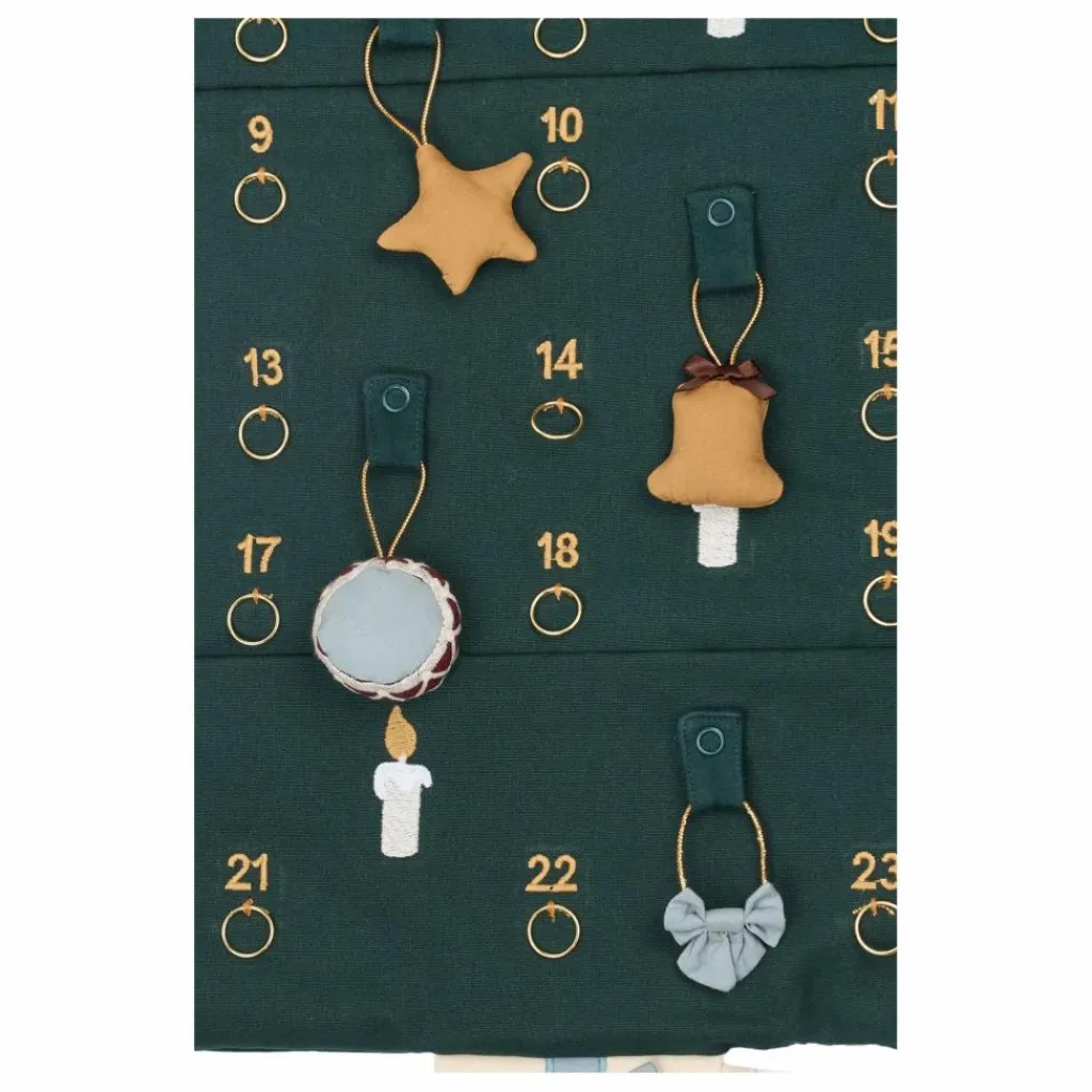 - Le nouveau calendrier de Noël en tissu de Fabelab est plein de charme et de magie de Noël. Avec de magnifiques décorations qui peuvent être déplacées et de petits anneaux dorés pour suspendre des cadeaux ou des friandises, chaque jour devient un moment de surprise et de plaisir.