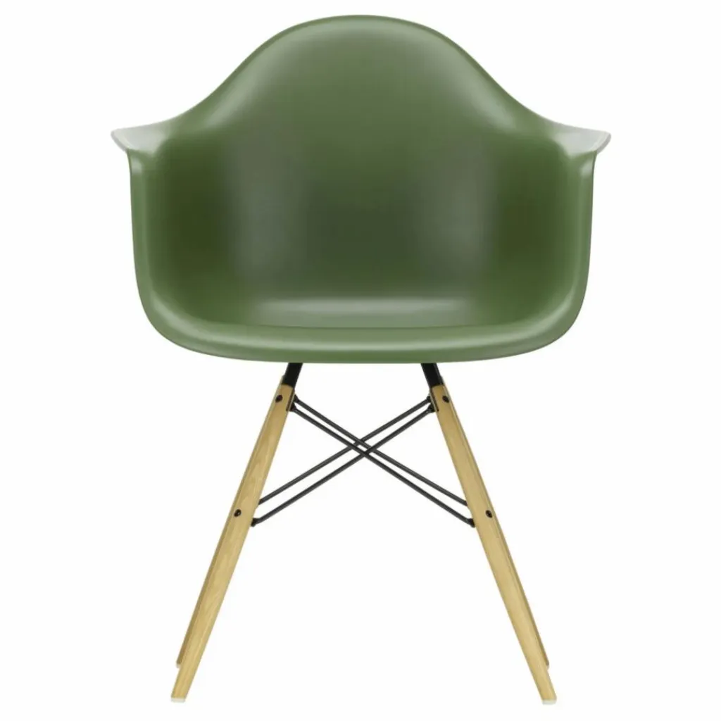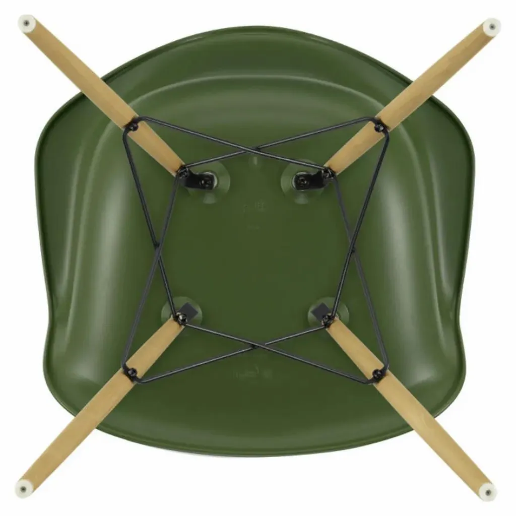 La chaise DAW (Dining Height Armchair Wood Base), conçue par Charles et Ray Eames, est un exemple emblématique d’un siège dont la coque peut être associée à différents types de piètements. Son piètement en bois crée un contraste intéressant avec la coque en plastique recyclé post-consommation. Cette combinaison de matériaux offre non seulement un aspect visuel attrayant, mais elle contribue également à la durabilité de la chaise en utilisant des matériaux recyclés.