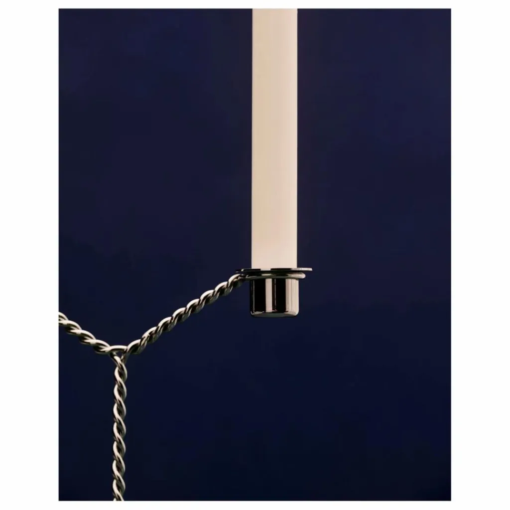 - Conçu par le designer néerlandais Chris Kabel, le bougeoir Wire Candleholder est fabriqué à partir d’un seul morceau de fil d’acier torsadé qui est plié pour former un double candélabre. Les deux bougeoirs du haut sont contrebalancés par les trois pieds angulaires, créant un design simple mais élégant qui peut être utilisé sur les rebords de fenêtre, les tables à manger ou d’autres surfaces dans la maison. Disponible en différentes couleurs.