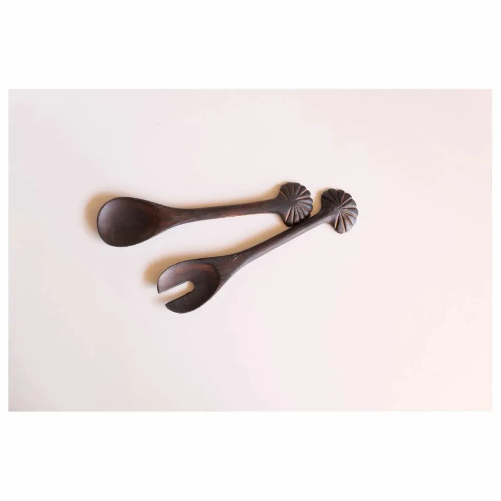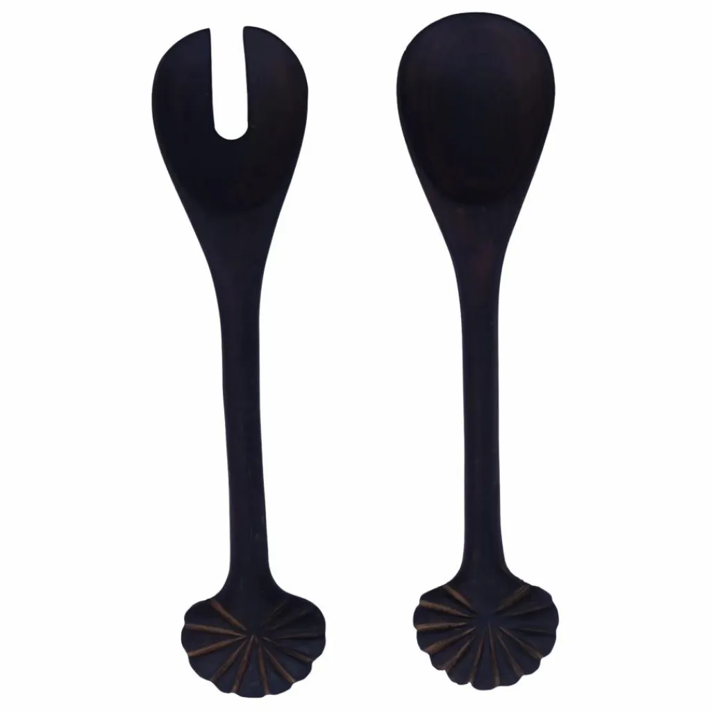 - Découvrez nos magnifiques couverts à salade en bois brûlé, avec un manche finition coquillage offrant à la fois fonctionnalité et élégance à votre service de table.