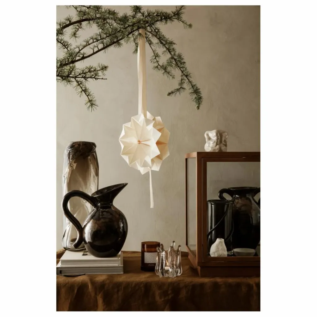 Délicate et poétique, cette décoration en papier a été imaginée par l’artiste Amanda Betz. Avec son gracieux ruban, suspendez-la à votre arbre de Noël ou à votre fenêtre pour créer une atmosphère élégante.