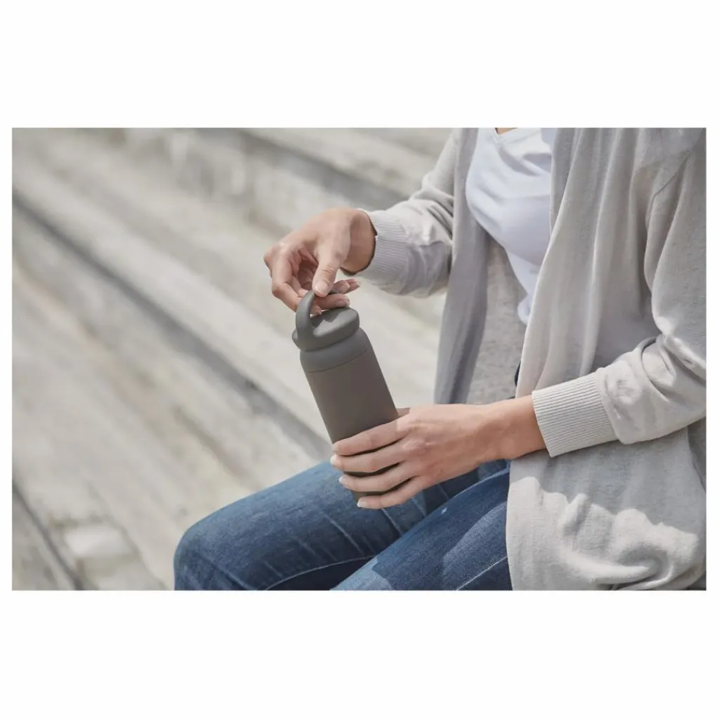 Cette gourde conserve la température et la saveur des boissons pendant plus de 6 heures. Sa poignée ergonomique permet de la transporter facilement lors de vos promenades.
