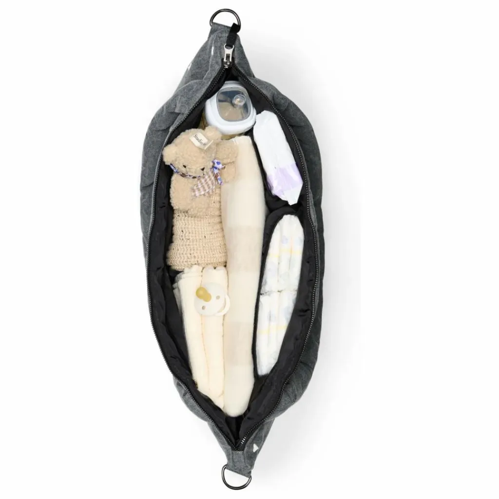 - Le sac à couches Studio Noos est l’outil indispensable pour les parents qui ont l’esprit pratique. Conçu dans un souci de commodité, il est doté d’une doublure hydrofuge, d’une fermeture à glissière sécurisée et de multiples compartiments pour que tout soit bien organisé. Des couches aux lingettes en passant par un porte-biberon intégré, ce sac peut contenir tous les éléments essentiels. De plus, grâce aux anneaux en D de chaque côté, il s’attache facilement à n’importe quelle poussette, garantissant ainsi des aventures sans encombre avec votre petit.