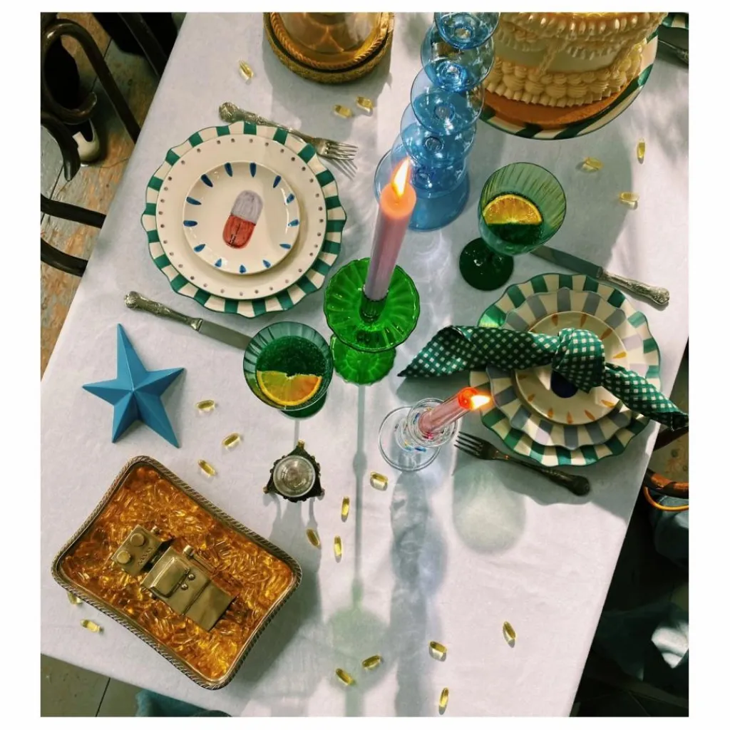 - Le set de serviettes vichy est un set céleste qui apportera des couleurs luxueuses à votre table à manger. Ce set présente un motif à carreaux verts enchanteurs qui ne manquera pas d’agrémenter un arrangement de table cosmique.