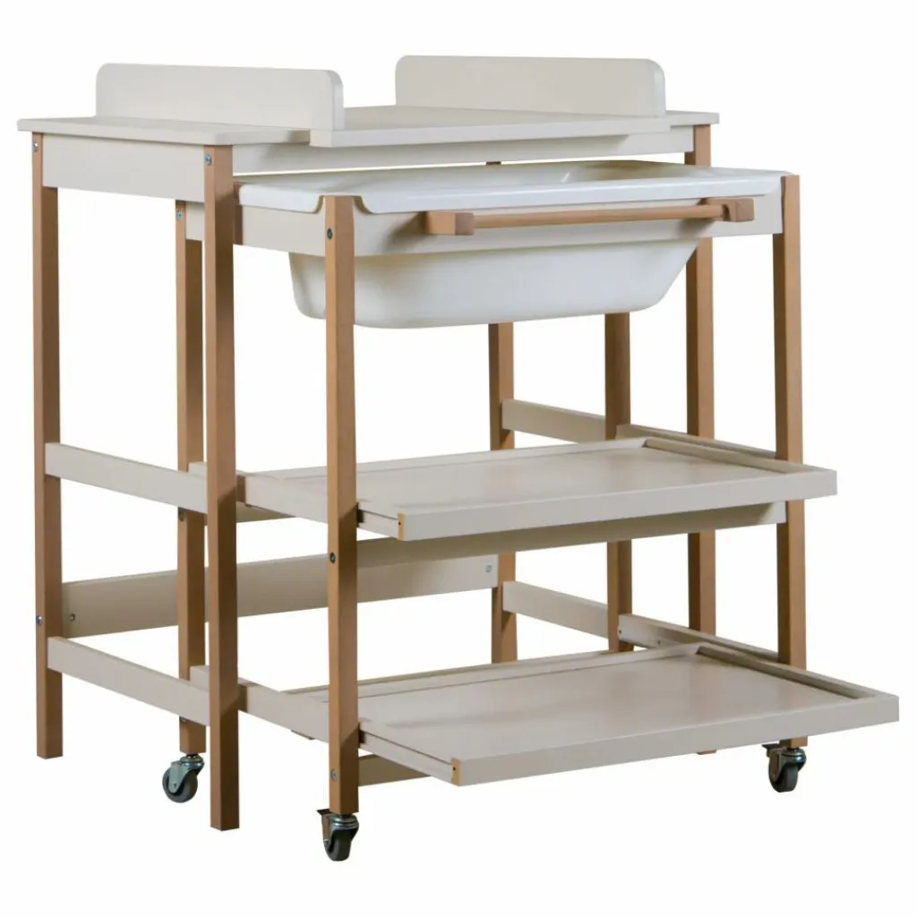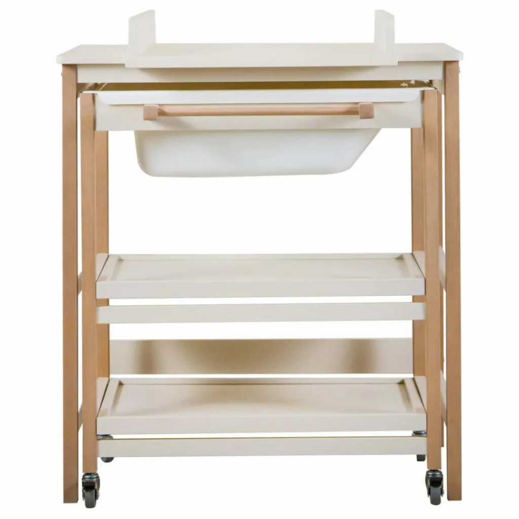 - Comprend 1 baignoire, 2 étagères amovibles, 1 extension à langer, 1 tuyau de vidange