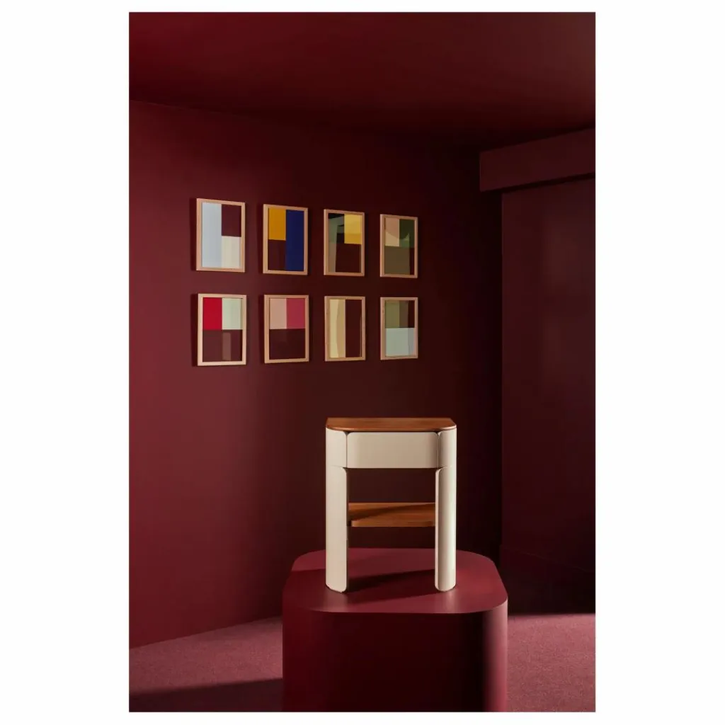 - Écrin secret. Nouvelle signature de la Maison, la collection Équilibre joue sur les accords parfaits entre chêne brut et laque haute brillance. La table de chevet éponyme affiche des courbes éclatantes – un fini laqué teinte écru – réchauffées par une base en chêne massif.