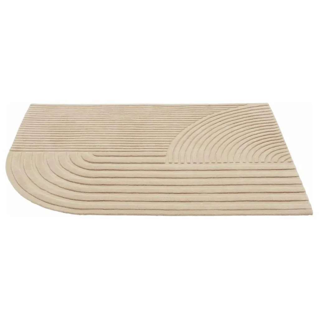 - Relevo est un tapis moelleux qui se distingue par sa qualité sculpturale. Son motif graphique frappant est obtenu en taillant la laine tuftée à différents niveaux, créant ainsi un jeu d’ombres accrocheur qui donne l’impression d’être bicolore plutôt que monochrome. Le coin arrondi unique du tapis lui confère un caractère unique, une expression dynamique dans n’importe quel environnement.