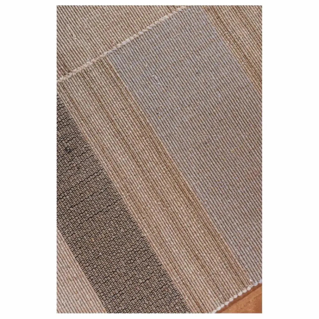 Fini avec le « L » signature de Lorena et une ligne de couture visible dans des nuances naturelles et de lin, chaque pièce est brossée à la main afin d’éliminer les fils lâches et de mettre en valeur son aspect fait main. Les tapis étant pliés pour l’expédition, de légères marques de pli peuvent apparaître, mais elles disparaîtront après avoir été posés à plat. Nettoyage professionnel recommandé.