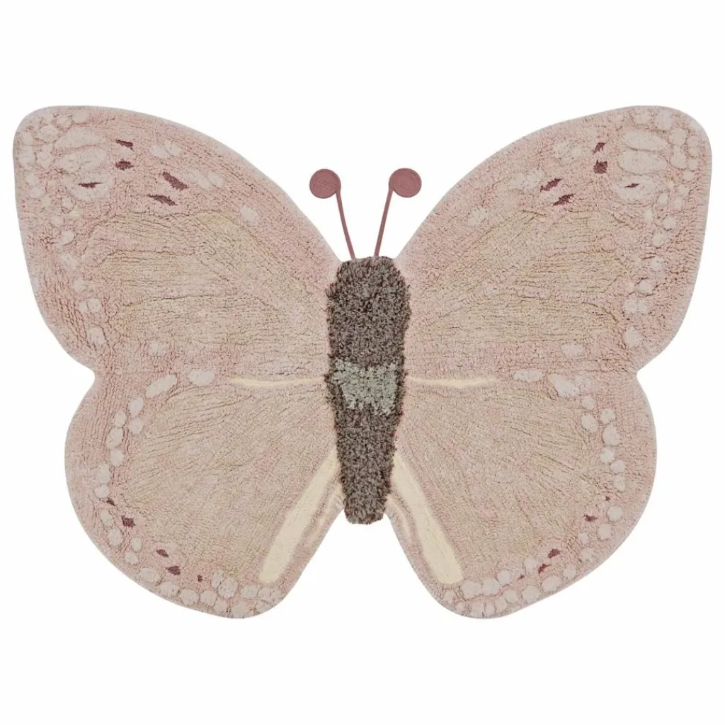 - Déplacez-vous vers des endroits inattendus sur le tapis Baby Butterfly. Agréable au toucher avec ses différentes hauteurs de poils, ce tapis est composé d’un total de huit teintes de rose doux et de pêche qui se mélangent pour créer un papillon plus réaliste.