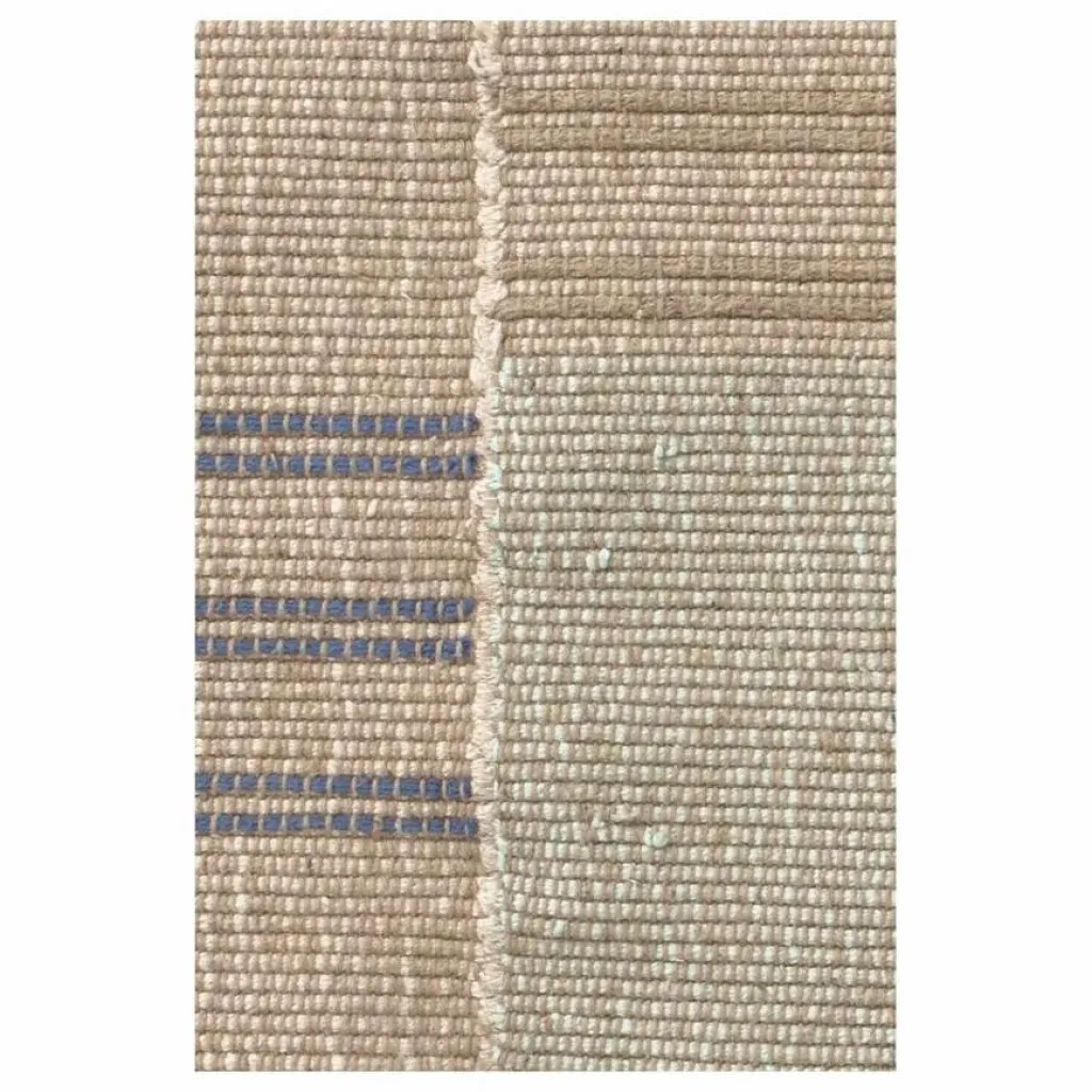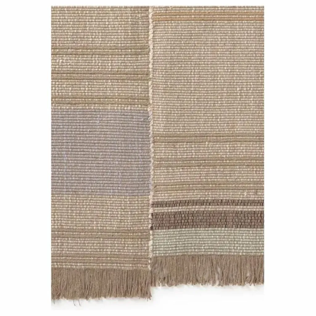 Chaque pièce est signée du « L » emblématique de Lorena et dotée d’une ligne de couture visible dans des nuances naturelles et de lin. Chaque tapis est ensuite brossé à la main afin d’éliminer les fils lâches et de mettre en valeur son aspect artisanal. Les tapis étant pliés pour l’expédition, de légères marques de pli peuvent apparaître, mais elles disparaîtront après avoir été posés à plat. Nettoyage professionnel recommandé.