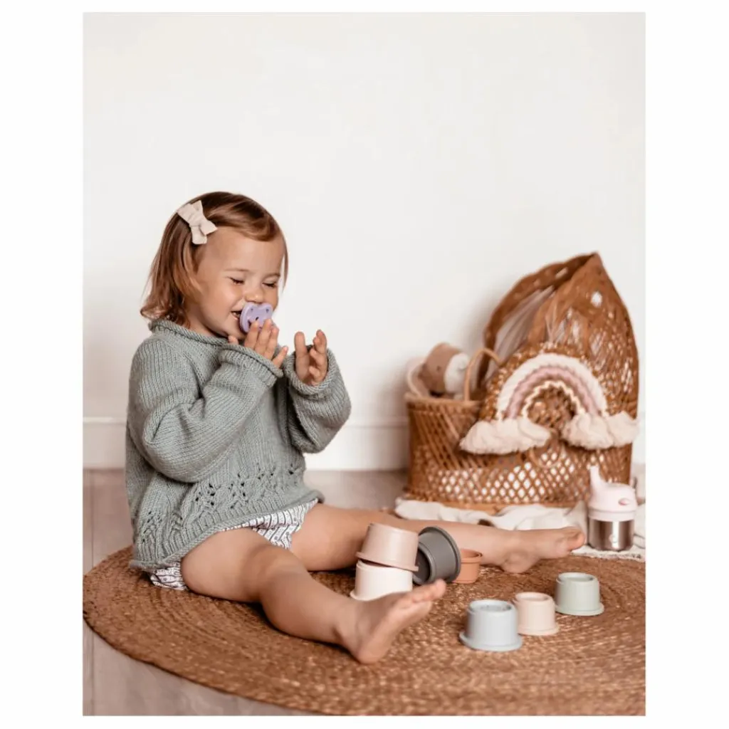 À stériliser dans de l’eau bouillante. Le caoutchouc naturel est une matière qui évolue avec le temps, il est donc essentiel de remplacer une tétine toutes les 8 à 10 semaines.