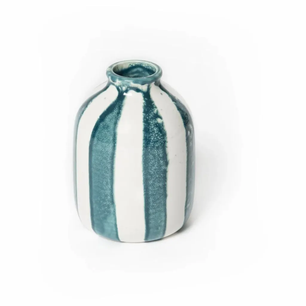Fabriqués au Portugal, les vases Riviera ont été façonnés et émaillés de manière traditionnelle. On retrouve la rayure signature de la Maison Sarah Lavoine avec une déclinaison de couleurs fortes.