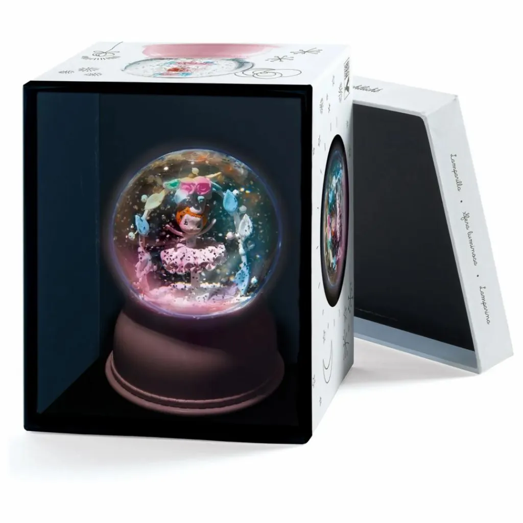 - Une veilleuse boule de neige scintillante « Ballerine » inspirée des ballets les plus féériques. Remplie de petites paillettes, cette veilleuse est équipée d’un mécanisme silencieux qui fait tournoyer les paillettes autour de la ballerine et diffuse une lumière discrète qui change de couleur. Pour des nuits douces et apaisantes.