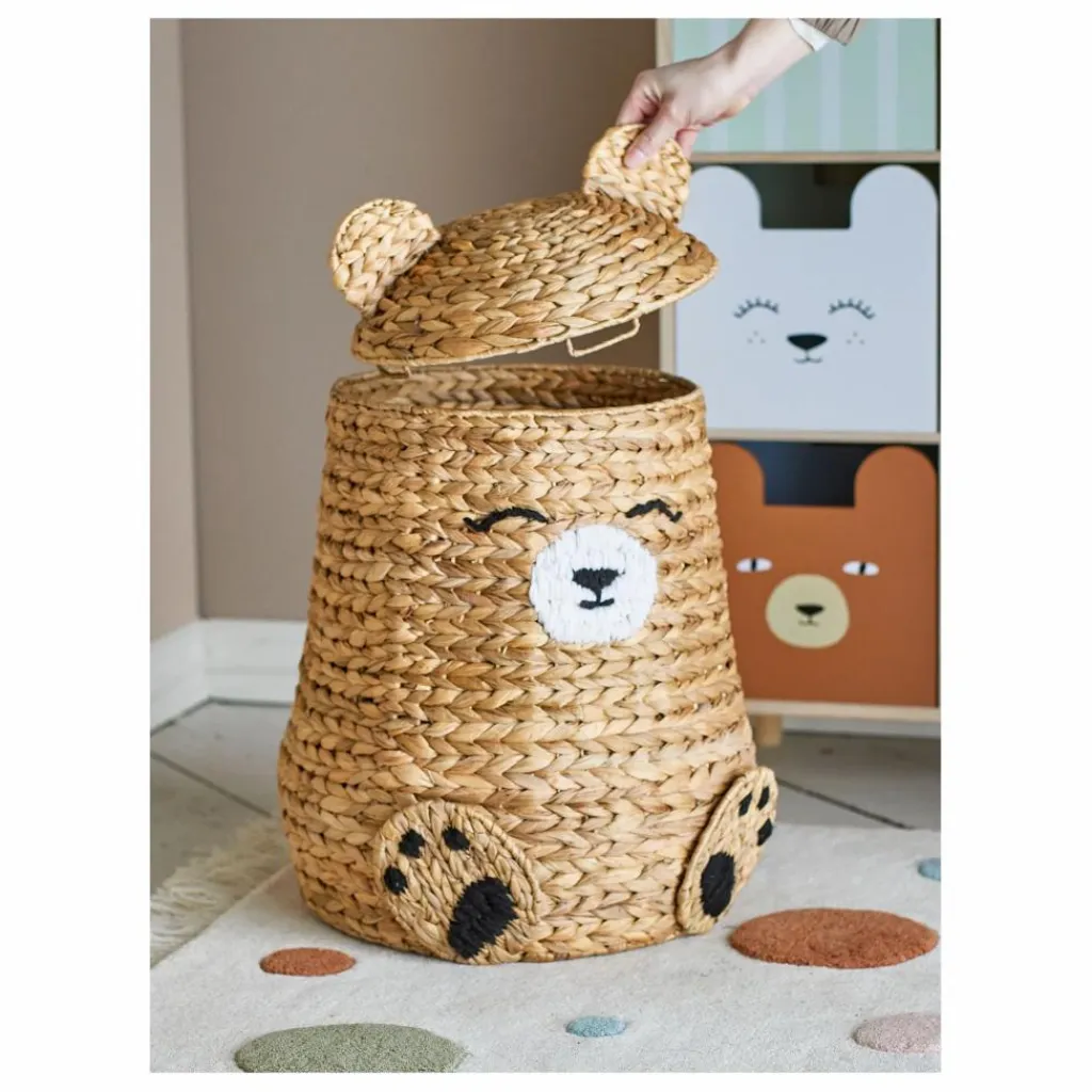 - Le Timone Panier avec couvercle de Bloomingville MINI est idéal pour le rangement tout en étant un compagnon de jeu amusant. Le grand panier en forme d’ours garde trace de tous les jouets et ajoute une touche cosy à n’importe quelle pièce. Le couvercle du panier peut être enlevé, ce qui facilite l’accès aux ours en peluche et aux jouets pour les petites mains, et les ranger à nouveau. L’apparence du panier peut varier en fonction de la saison de récolte du matériau.