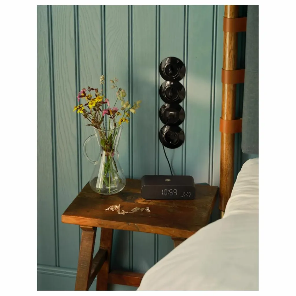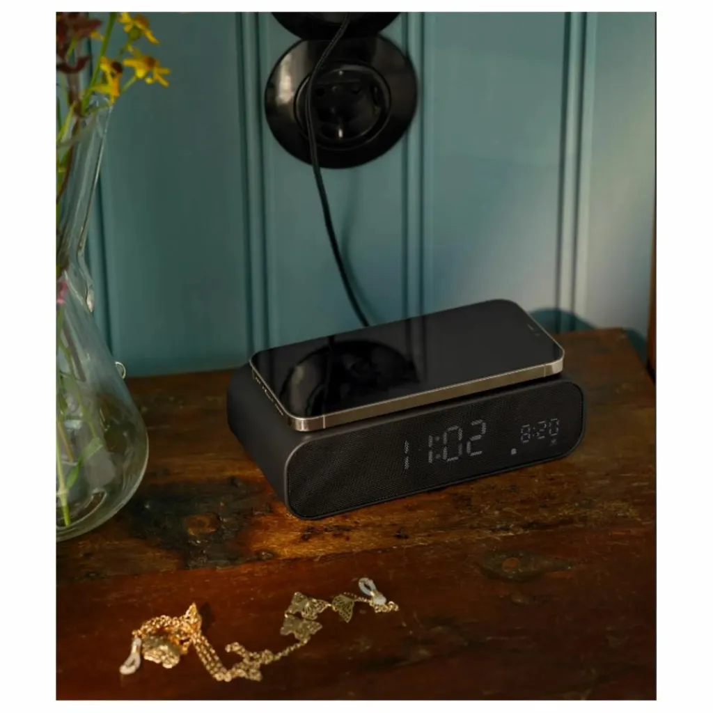 - Wakie est un réveil élégant et astucieux avec réveil lumineux et recharge sans fil. Conçu pour vous accompagner au réveil et vous aider à vous détendre le soir. Son design épuré et minimaliste place toutes les commandes au dos, offrant une vue dégagée. La luminosité de l’écran est réglable selon vos préférences : l’heure est ainsi toujours visible sans perturber votre sommeil. Vous pouvez également éteindre complètement l’écran. Posez votre téléphone dessus avant de vous coucher : il se rechargera pendant votre sommeil. Le haut-parleur intégré vous permet d’écouter des sons pour vous endormir ou un peu de musique lorsque vous vous préparez. Simple et pratique, il vous offre des moments de calme, de jour comme de nuit.