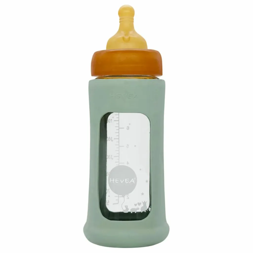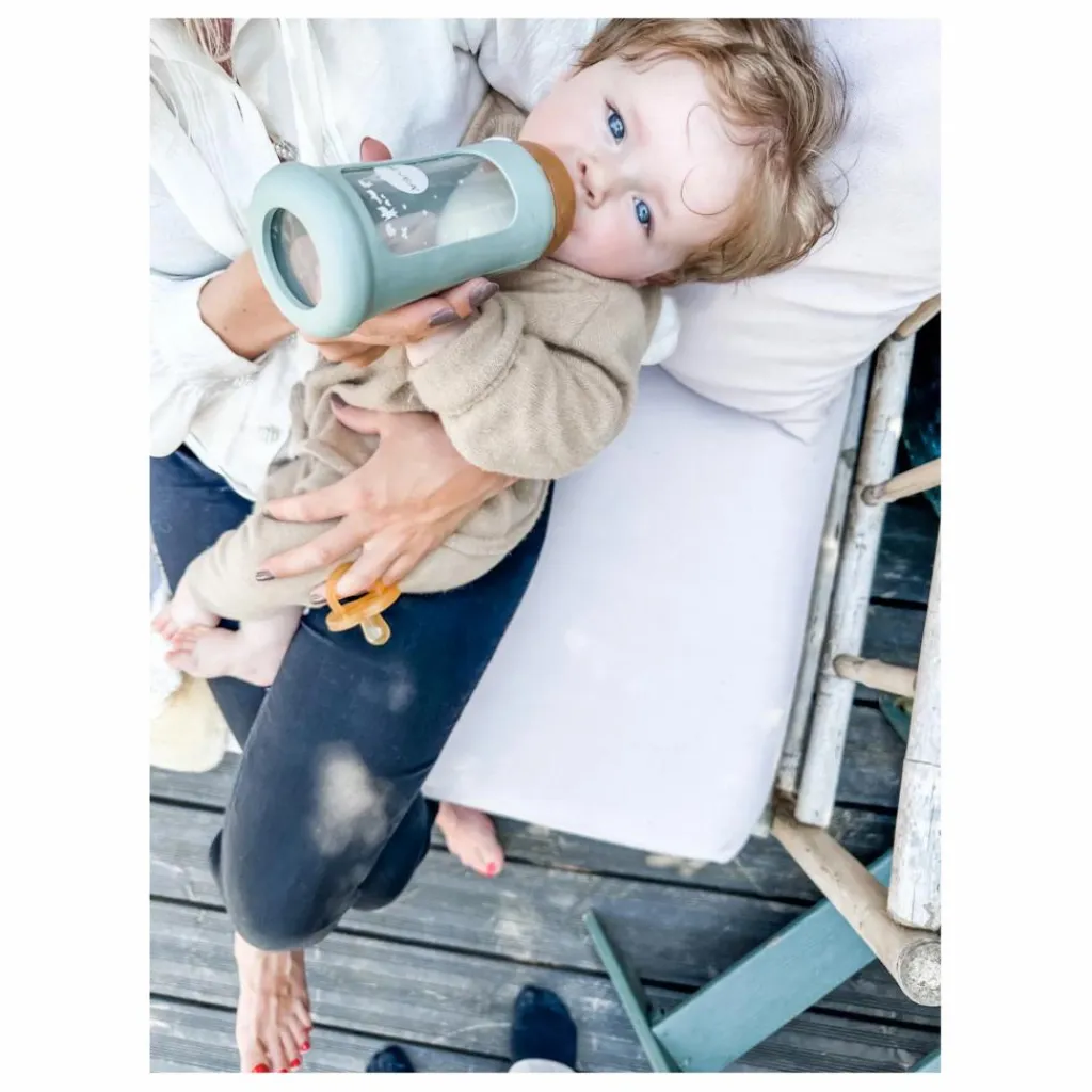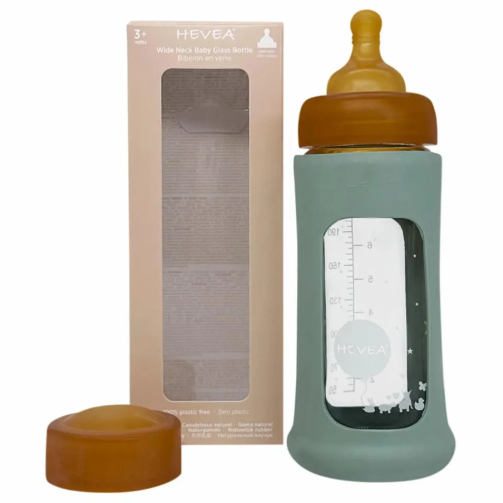 Ce biberon en verre à col large avec housse de protection débit moyen est fabriqué en caoutchouc naturel, l’intérieur de la tétine et du capuchon est moulé pour s’adapter parfaitement au goulot du biberon sans que le lait ne se répande. Les biberons à col large sont particulièrement recommandés pour le lait maternel, car le large col du biberon permet un accès facile au lait.