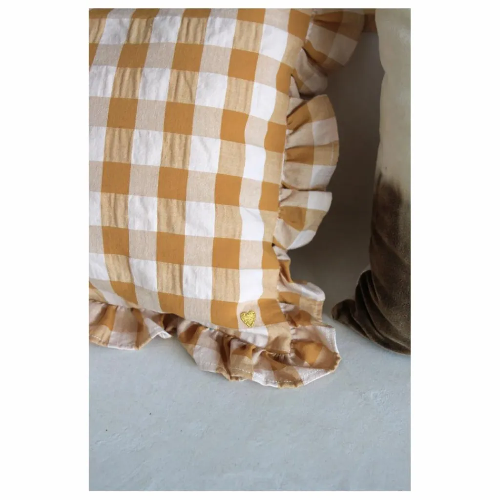 Vichy charmant, volant frou frou et broderie petit cœur. Un design exclusif signé Barnabé aime le café.