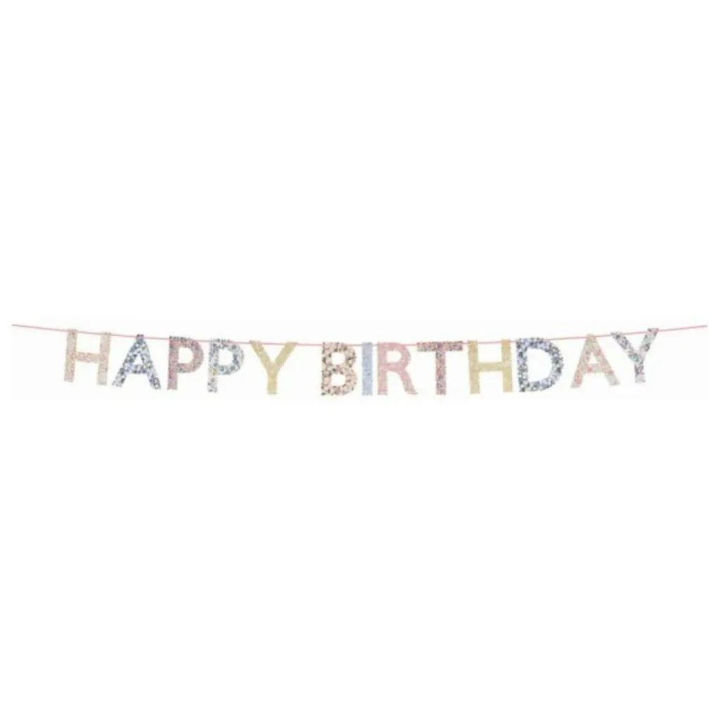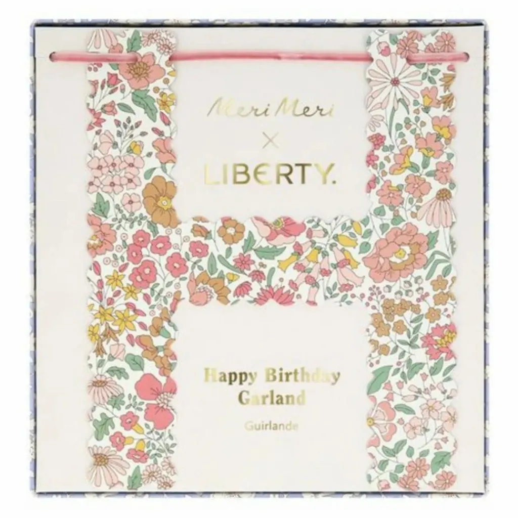 - Nous nous sommes associés à Liberty pour vous offrir la guirlande en papier « Joyeux anniversaire ». La combinaison d’imprimés floraux Liberty classiques, tant sur la guirlande que sur la boîte, avec un ruban de velours rose tendre ajoute une touche sophistiquée. C’est la guirlande festonnée parfaite à utiliser pour des célébrations élégantes pour tous les âges. Accrochez-le sur la table de fête, au mur, à la fenêtre ou sur le porche, ou partout où vous souhaitez un effet maximal.