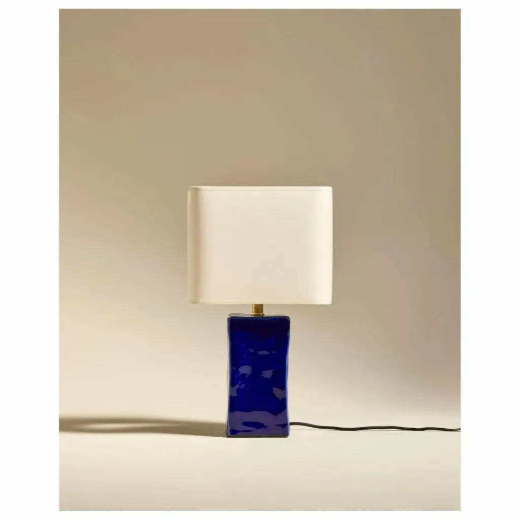 Charme brut. Hommage à l’empreinte du geste artisanal, la collection Nomad fait naître des pièces sculpturales à l’histoire unique. La lampe Nomad est un poème, coiffée d’un abat-jour géométrique veillant sur les angles de son socle modelé à la main.