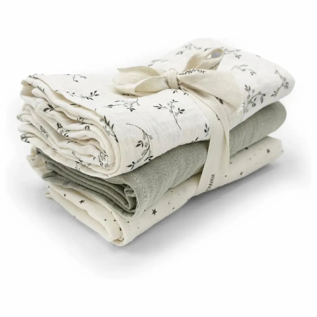 - Lot de 3 serviettes en mousseline de coton biologique de taille moyenne que vous pouvez utiliser comme serviette de secours pendant l’allaitement au biberon ou comme bavoir improvisé.