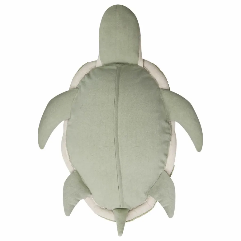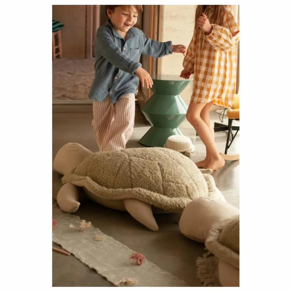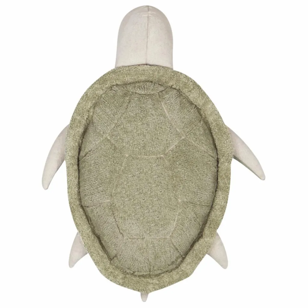 - Dites bonjour à Mme Turtle ! Avec une coque en velours de coton doux vert olive touffeté selon un motif symétrique, ce pouf est parfait sur lequel vos tout-petits peuvent grimper. Avec des pattes, une tête et une queue en toile de couleur naturelle et un ventre en toile vert olive, la housse du pouf est lavable : il suffit de retirer le remplissage intérieur en utilisant la fermeture éclair en bas.