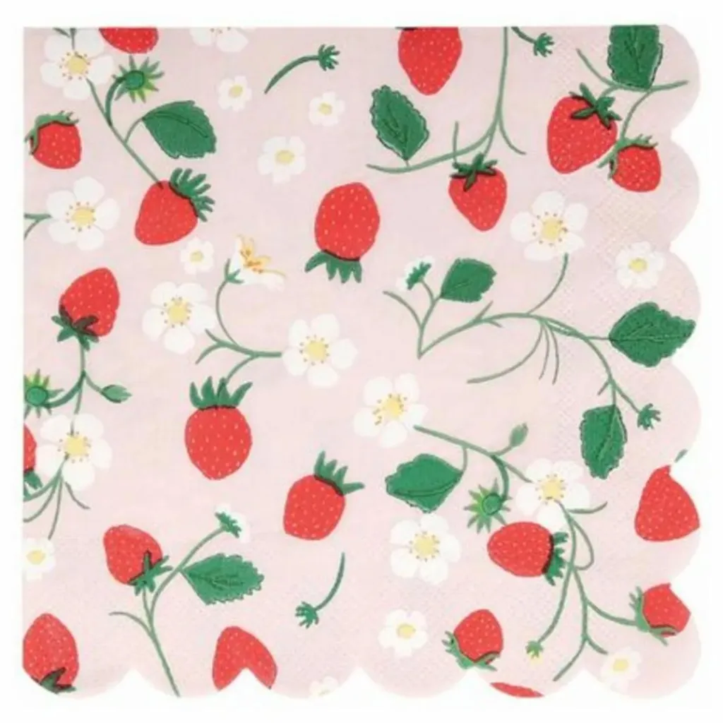 - Les fraises sont estivales et sucrées, il n’est donc pas étonnant que ce design fruité ait un moment. Ces grandes serviettes en papier au bord festonné élégant sont parfaites pour les pique-niques, les garden-parties et les parties de tennis, pour apporter la beauté de la nature à votre fête.