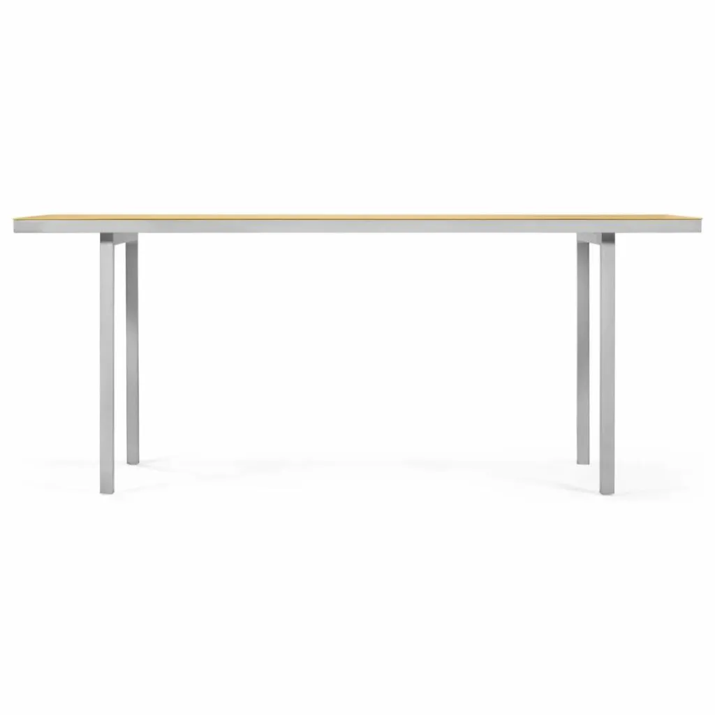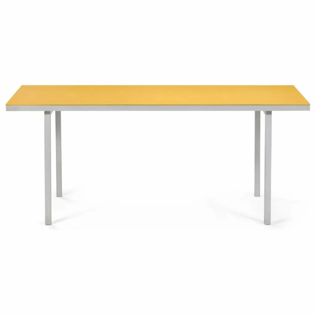 - Un jardin mérite un design qui intensifie la beauté de ses arbres, de son gazon et de ses fleurs. C’est dans cet esprit que nous présentons la table alu du célèbre couple de designers Muller Van Severen. La table est disponible en trois tailles, S, M et L, et peut être considérée comme le prolongement créatif de la chaise alu. Comme la chaise, la table alu se compose d’un cadre en aluminium léger et d’une surface laquée épaisse, ce qui permet à la couche de couleur de devenir un matériau à part entière. Les couleurs sont 100 % Muller Van Severen, avec des teintes spécifiques et bien choisies de rose, de vert, de jaune et d’écru. Ces couleurs fraîches sont assorties à celles des chaises et se marient parfaitement avec la sérénité de la vie en plein air ensoleillée. Muller Van Severen a l’intention d’utiliser la table aussi bien à l’intérieur qu’à l’extérieur. Grâce à son poids léger, elle peut être déplacée facilement.