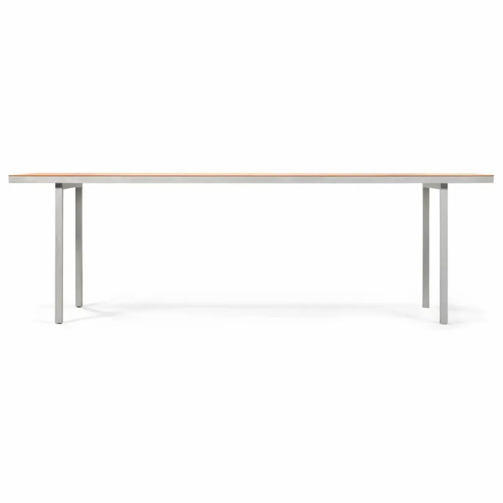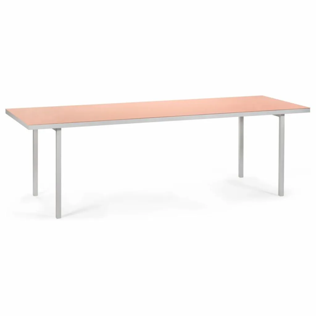 - Un jardin mérite un design qui intensifie la beauté de ses arbres, de son gazon et de ses fleurs. C’est dans cet esprit que nous présentons la table alu du célèbre couple de designers Muller Van Severen. La table est disponible en trois tailles, S, M et L, et peut être considérée comme le prolongement créatif de la chaise alu. Comme la chaise, la table alu se compose d’un cadre en aluminium léger et d’une surface laquée épaisse, ce qui permet à la couche de couleur de devenir un matériau à part entière. Les couleurs sont 100 % Muller Van Severen, avec des teintes spécifiques et bien choisies de rose, de vert, de jaune et d’écru. Ces couleurs fraîches sont assorties à celles des chaises et se marient parfaitement avec la sérénité de la vie en plein air ensoleillée. Muller Van Severen a l’intention d’utiliser la table aussi bien à l’intérieur qu’à l’extérieur. Grâce à son poids léger, elle peut être déplacée facilement.