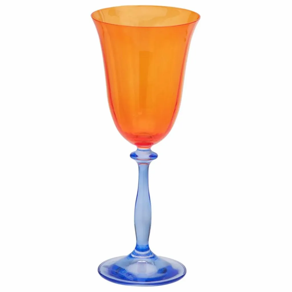 Le verre à vin Paradise est un magnifique objet classique qui ajoutera des couleurs vives à votre table à manger. Le verre a un design vintage avec une magnifique cloche orange vif et un pied bleu foncé de rêve.