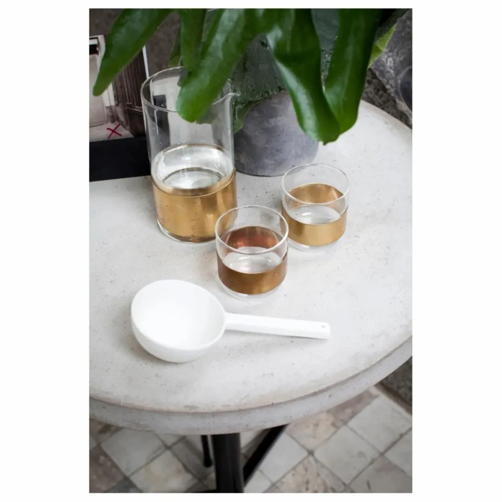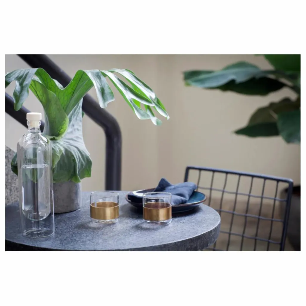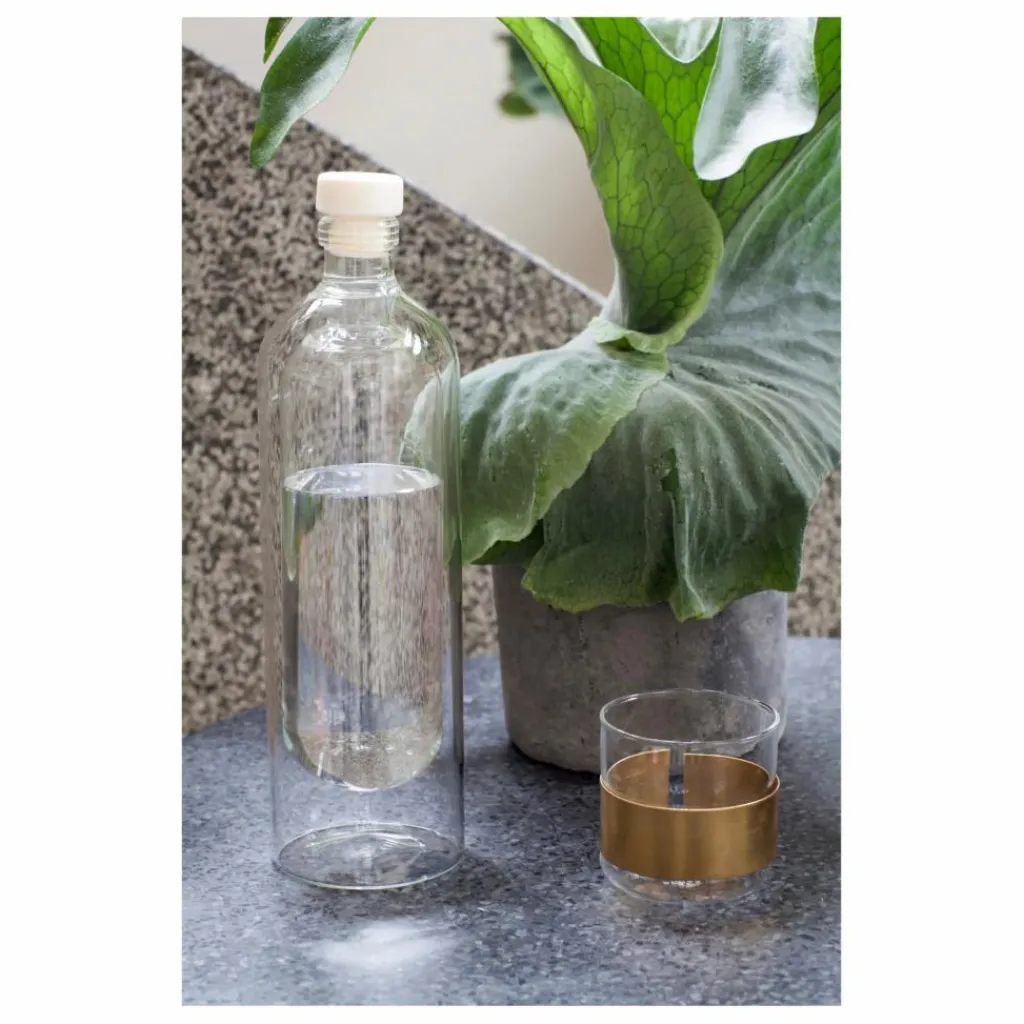 Ce verre aux lignes pures et simples viendra sublimer votre table à manger. L’accent de l’anneau doré est la petite touche qui lie l’ensemble et apportera un vrai plus à votre décoration. L’anneau en cuivre peut être retiré.