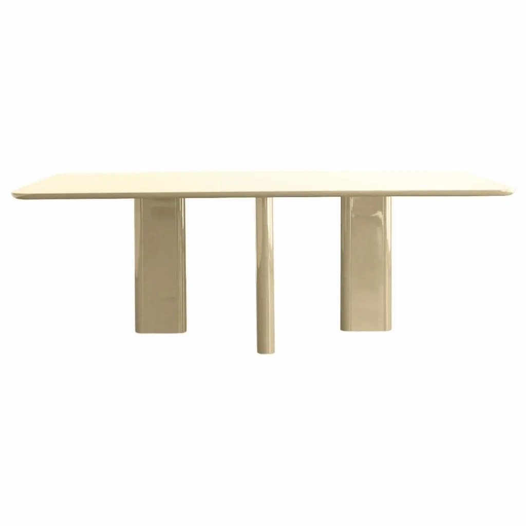 Matériaux nobles, détails sophistiqués et lignes affirmées, la table Gabrielle Paris sublime les espaces et réinvente l’esprit seventies. La laque s’invite pour une esthétique audacieuse, les bords sont biseautés, et les formes sont contrastées.