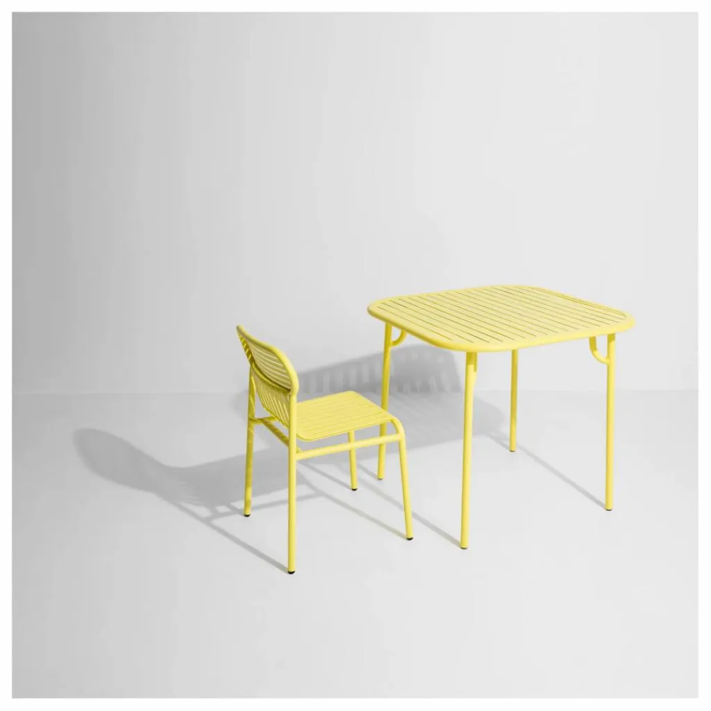 Cette table carrée à lattes de la collection WEEK-END, conçue par le Studio BRICHETZIEGLER, allie esthétisme et fonctionnalité. Le plateau arrondi, accentué par ses bords soigneusement définis, crée un visuel distinctif tout en apportant une touche de modernité à sa silhouette. Son design unique, associé à la robustesse de ses lattes renforcées, lui confère une élégance intemporelle. Fabriquée en aluminium, chaque table combine solidité et légèreté. Résistantes à l’eau et aux UV, ces tables sont parfaitement adaptées à une utilisation en extérieur, y compris en bord de mer, et bénéficient d’une garantie de 5 ans.