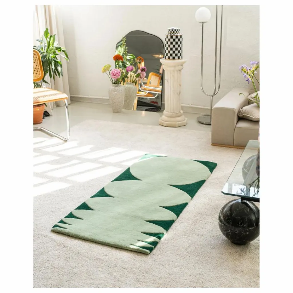 – La lumière directe du soleil peut faire pâlir les couleurs du tapis au fil du temps. – Ne mettez jamais votre tapis dans la machine à laver. – Si votre tapis a besoin de plus qu’un simple nettoyage ponctuel, il est préférable de consulter un nettoyeur de tapis professionnel qui a l’habitude de travailler avec des tapis en laine tuftés à la main. - Fabrication : Inde