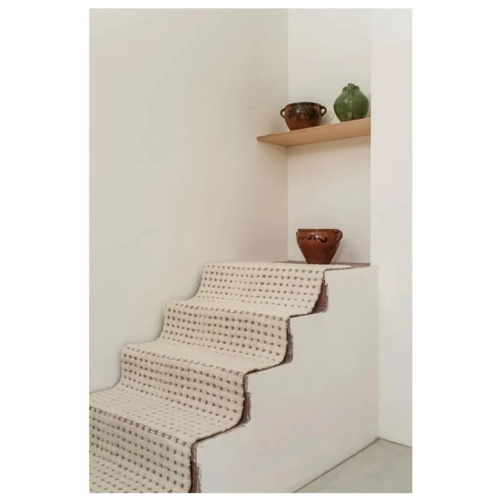- Ce tapis en laine, minutieusement fabriqué à la main, se distingue par ses petits carrés imparfaits, chacun unique, révélant progressivement sa beauté au fil du temps. Chaque carré est cousu dans deux directions — d’abord dans un sens, puis dans l’autre — créant une texture distinctive où le fil et le tissu se fondent harmonieusement, guidés par la main de l’artisan. Conçu avec une base en toile douce Linen et agrémenté de subtils carrés Natural, ce tapis apporte une élégance sereine et intemporelle à tout espace.