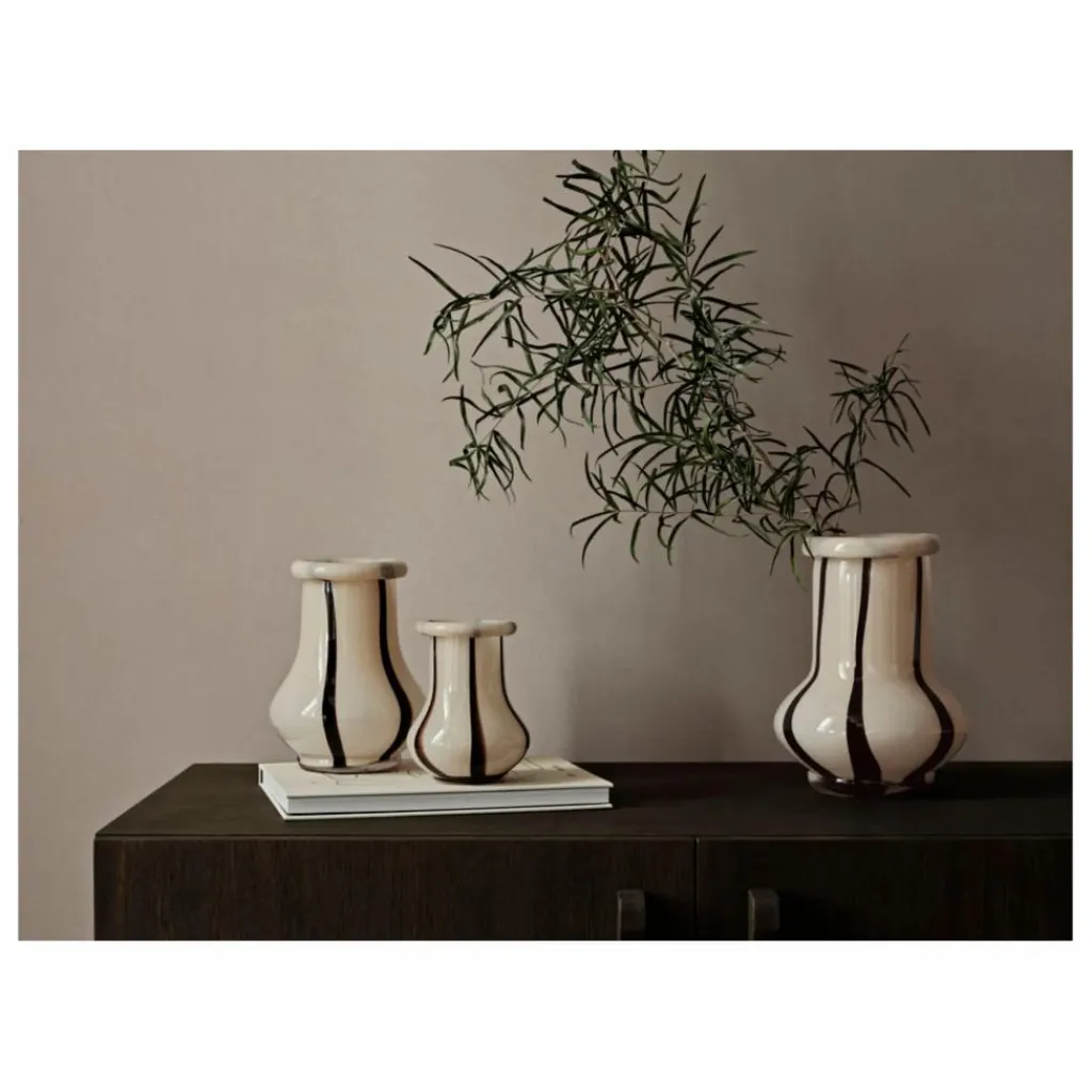 Le vase Riban, une charmante fusion de tradition et d’art, s’inspire de la fabrication artisanale classique des bonbons au sucre. Fabriquée à la main à partir de verre, chaque pièce est une création unique, mettant en valeur les talents de l’artisan qui façonne et intègre soigneusement les lignes dans le corps du vase. Son design, qui rappelle les délices de la confiserie, affiche un charme ludique et fantaisiste.