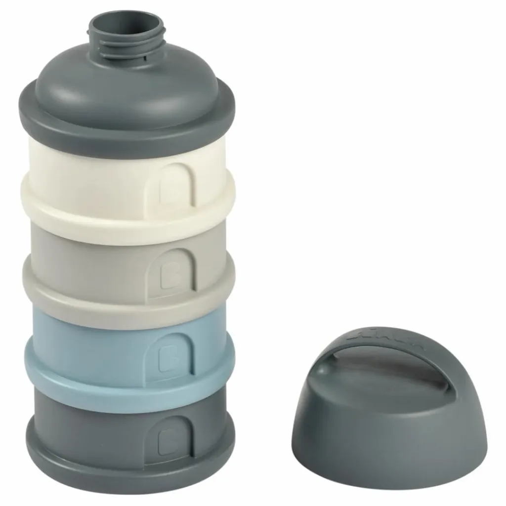 - 4 compartiments empilables, Large ouverture : facile à remplir et à nettoyer, Embout en entonnoir pour verser la poudre avec précision, Peut contenir 11 doses de lait