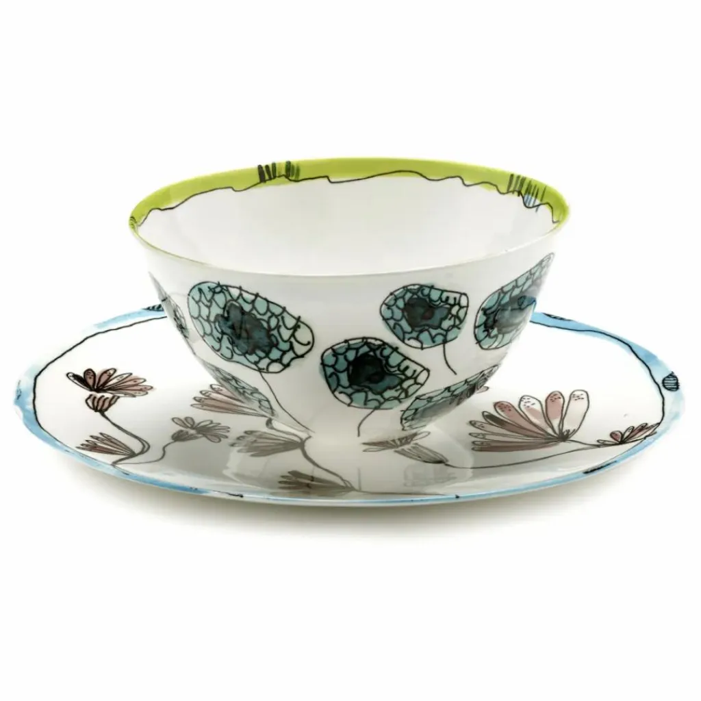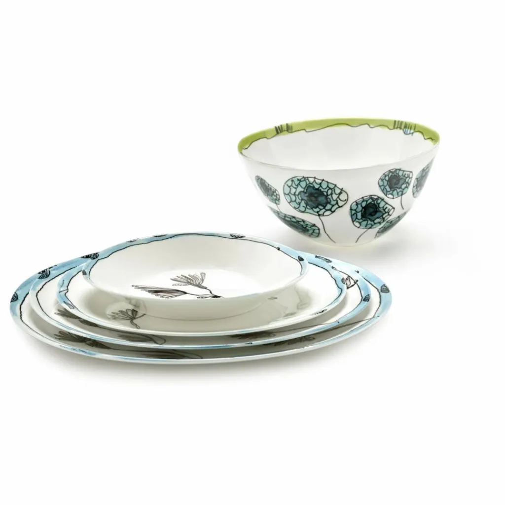 En collaboration avec Serax, la maison de mode italienne Marni a lancé un élégant service en porcelaine de 120 pièces, qui célèbre l’esprit artistique de la marque. Le motif floral inspiré de la nature est signé Francesco Rossi, le directeur artistique de Marni. Il est décalqué sur la porcelaine fine, avant d’y apposer une glaçure pour le rendre résistant à l’usure. Les formes légèrement asymétriques des assiettes, bols, tasses, plats et théières accentuent la finition manuelle et la qualité de la porcelaine.