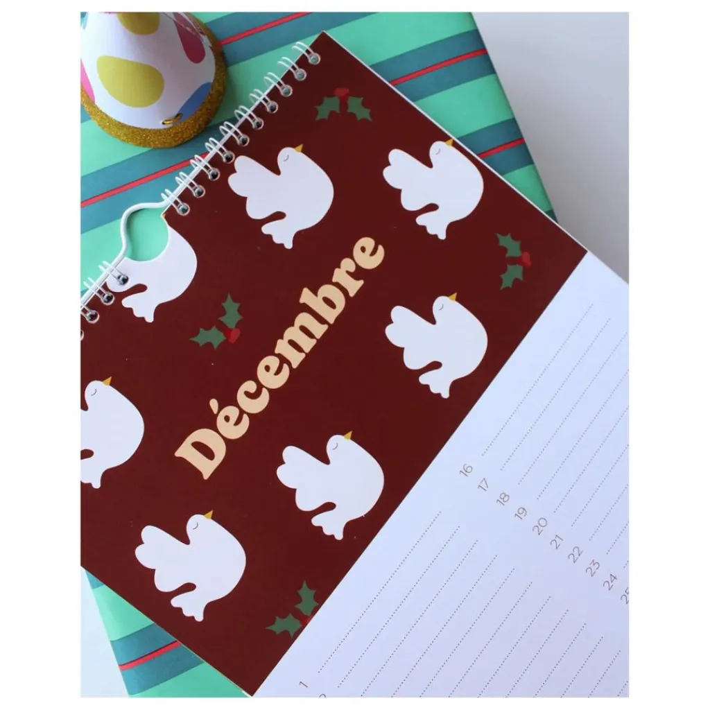 Reliure avec accroche murale. Impression sur papier de qualité. Douze pages illustrées, une pour chaque mois.