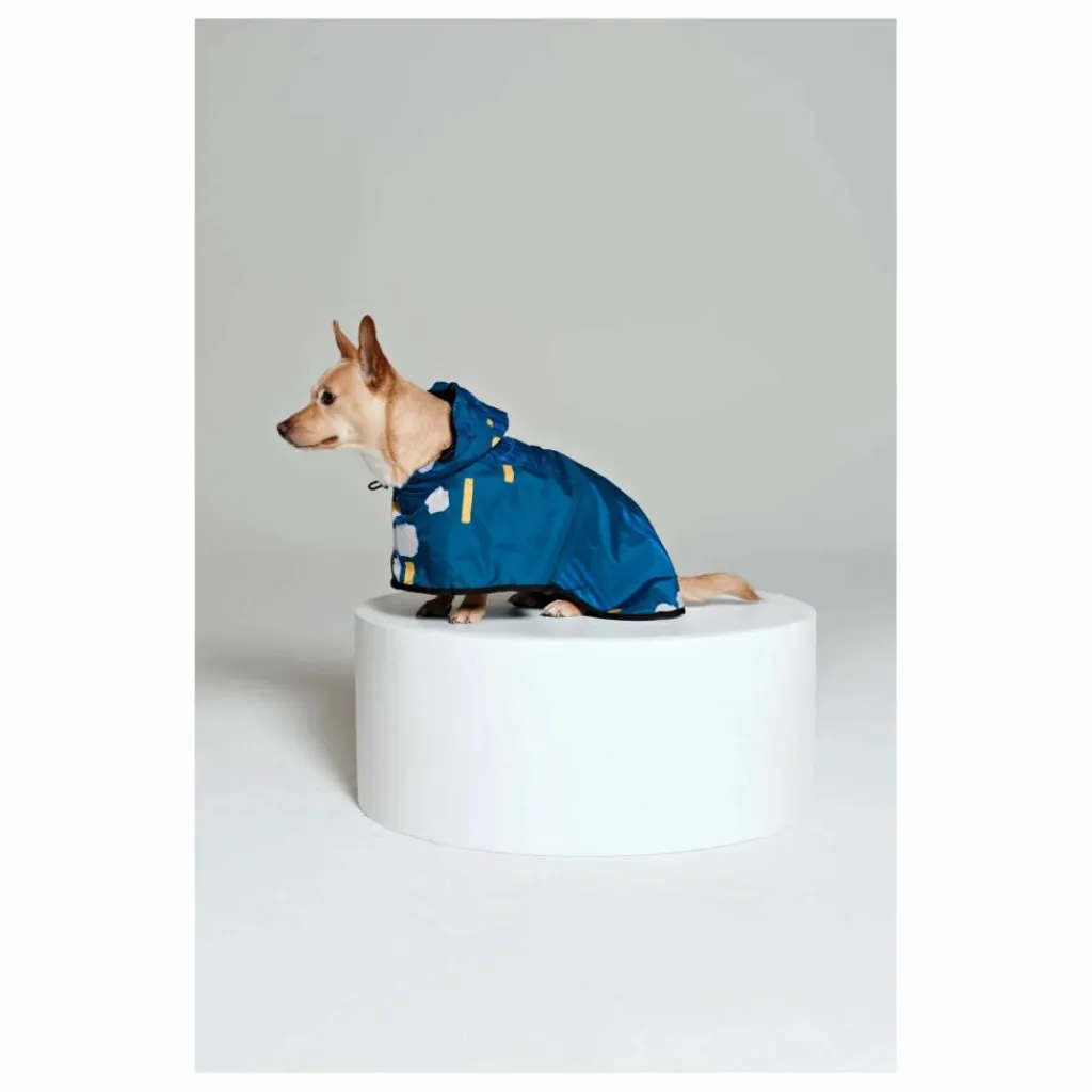 - Woof Woof. Découvrez notre nouvelle collection de ponchos pour chiens Rainkiss, disponibles en 3 imprimés étonnants et 4 tailles différentes, parfaits pour les chiens de toutes tailles. Nos ponchos pour chiens sont fabriqués en polyester 100 % recyclé de haute qualité et sont dotés d’une doublure en maille confortable. Les ponchos pour chiens sont dotés d’une sangle ventrale et d’une capuche réglables, ainsi que d’une ouverture pour la laisse à la base du cou et d’une attache supplémentaire pour une lampe lors des promenades nocturnes. Grâce aux bandes élastiques pour les pattes arrière, votre chien peut courir et jouer sous la pluie.