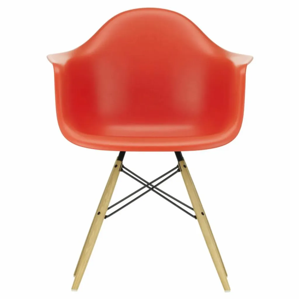 La chaise DAW (Dining Height Armchair Wood Base), conçue par Charles et Ray Eames, est un exemple emblématique d’un siège dont la coque peut être associée à différents types de piètements. Son piètement en bois crée un contraste intéressant avec la coque en plastique recyclé post-consommation. Cette combinaison de matériaux offre non seulement un aspect visuel attrayant, mais elle contribue également à la durabilité de la chaise en utilisant des matériaux recyclés.