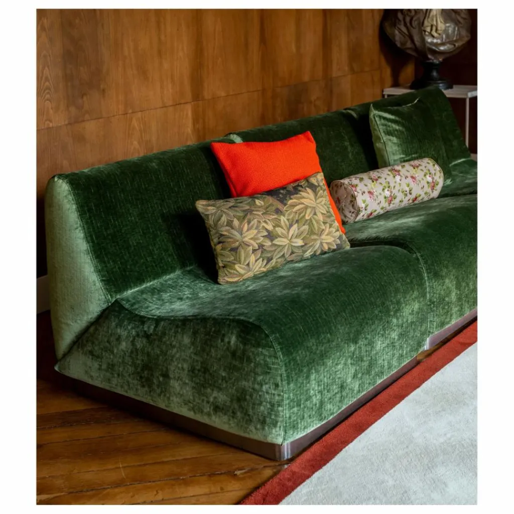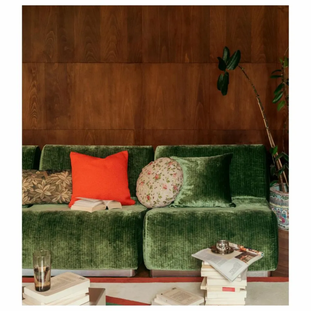 - Matière de l’assise : velours côtelé brillant, 68% viscose, 32% coton.