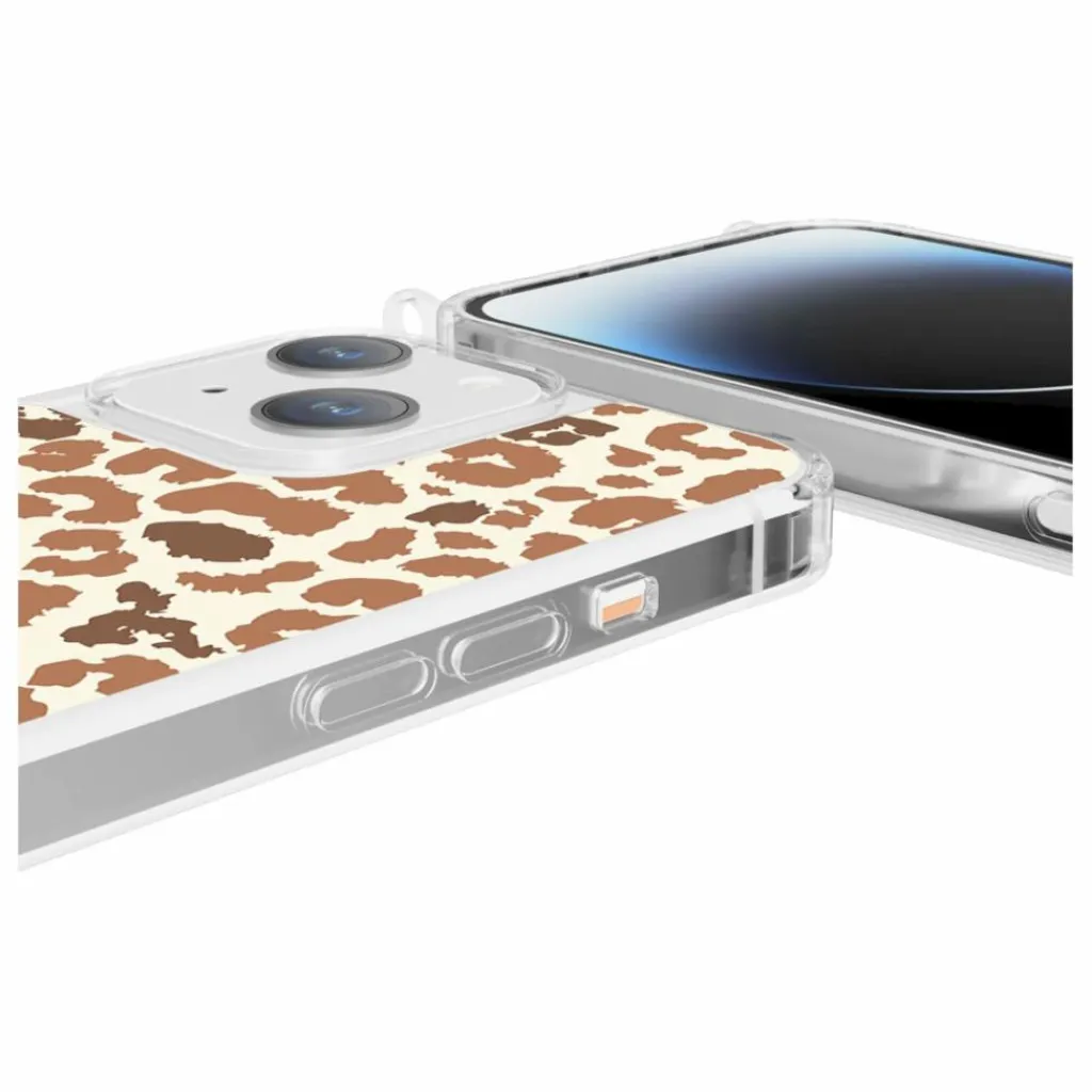 - Coque avec anneau glossy transparente Léopard beige et marron