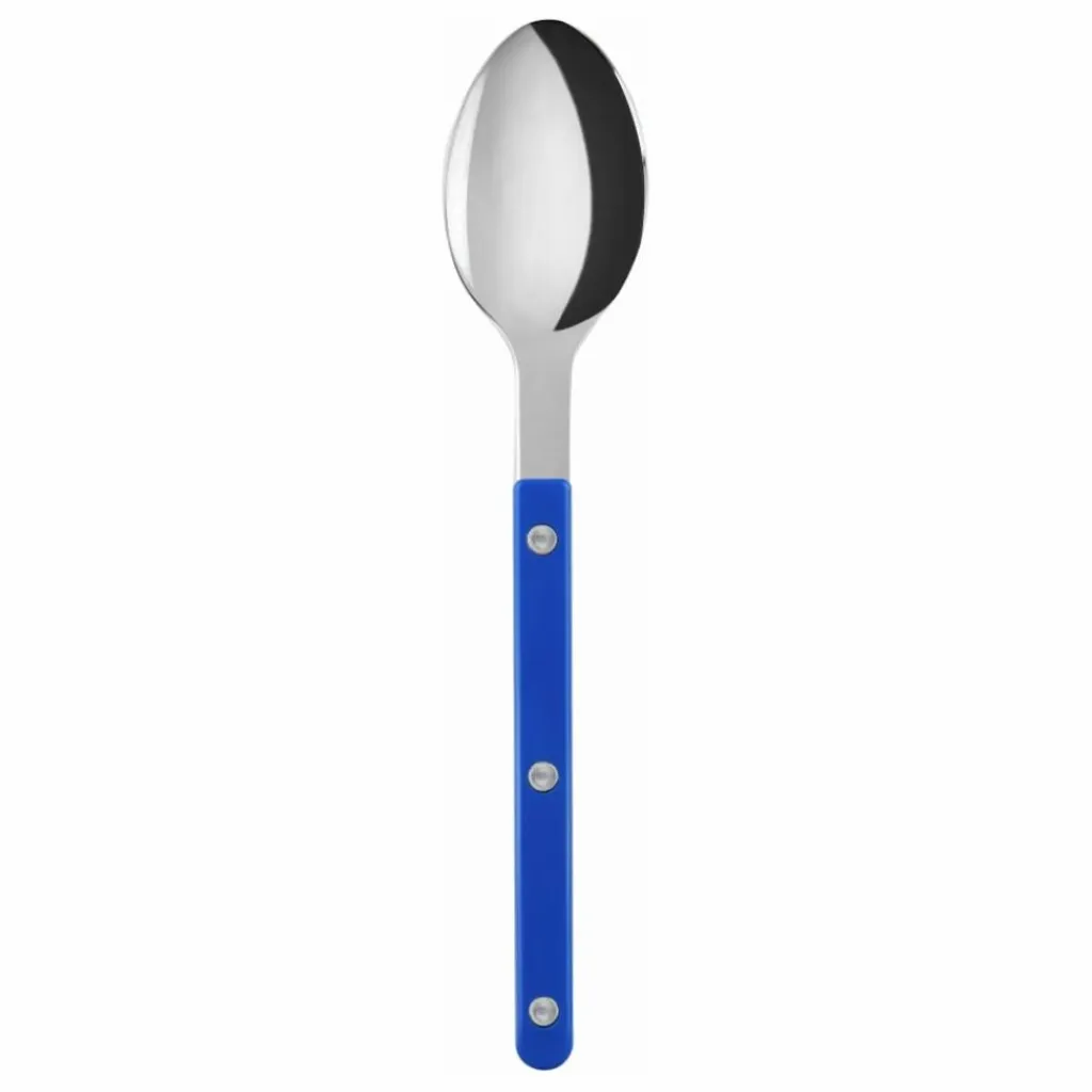 La marque Sabra a créé la collection Bistrot en s’inspirant de ces lieux de vie que nous adorons : restaurants, terrasses et cafés. En concevant ces couverts, l’objectif était de rester fidèles à cet esprit tout en apportant une touche de modernité. Les lignes sont simples, les rivets présents, et les couleurs ainsi que les matières se dévoilent : du rouge au bleu, avec des effets corne ou écailles. Disponible en finition brillante ou vintage, cette collection authentique et actuelle saura vous séduire.