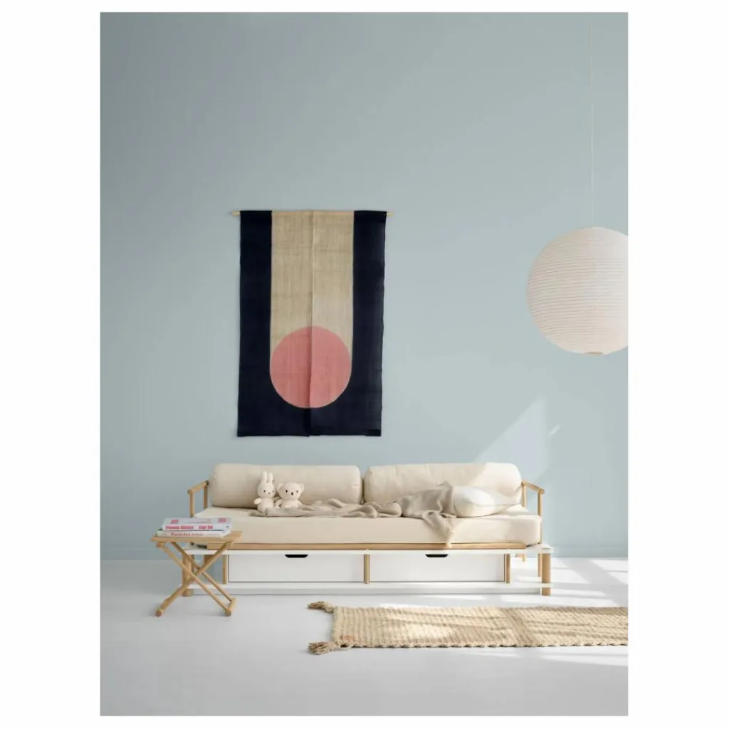 Le lit banquette Camp accompagne les enfants dès 3 ans jusqu’à l’adolescence. Son design bas, avec barrière et traversin optionnels, assure confort et sécurité pour les plus petits. Ses dimensions généreuses permettent aux parents de rassurer leur enfant durant la nuit. Doté d’accoudoirs bas, d’un dossier en rondins de chêne, de vis dissimulées et de tiroirs de rangement pratiques, ce lit peut être décoré de coussins et plaids pour créer un espace cosy et stylisé. Fonctionnel et esthétique, il s’intègre parfaitement dans une chambre d’enfant.