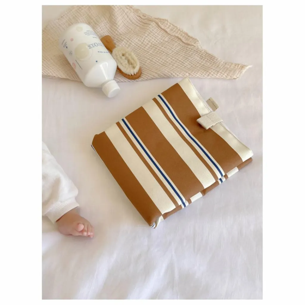Ce matelas à langer de voyage est pratique, confortable et sûr. Fabriqué en canevas de coton résistant, il possède une poche zippée pour les couches et lingettes, se replie facilement et se ferme avec un bouton aimanté. Son rembourrage en molleton assure le confort du bébé. Certifié Oeko-Tex, il est facile à nettoyer en machine. Un essentiel pour les parents en déplacement.
