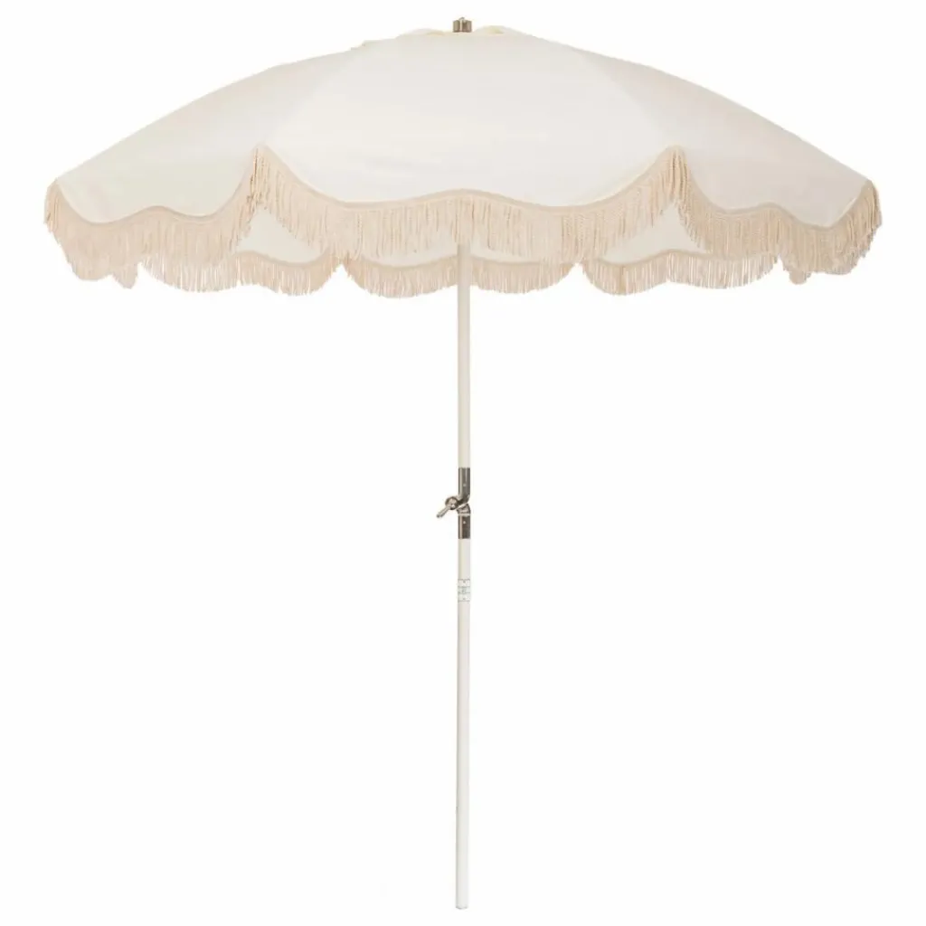 Le Parasol frangé Beach Club est une option élégante et robuste pour vos besoins en extérieur. Avec sa charnière en aluminium poli miroir et sa vis à sable sécurisée, il offre une stabilité fiable tout en étant facilement adaptable. Inspiré par l’industrie du yachting, il associe des matériaux de haute qualité pour une esthétique durable et distinctive.
