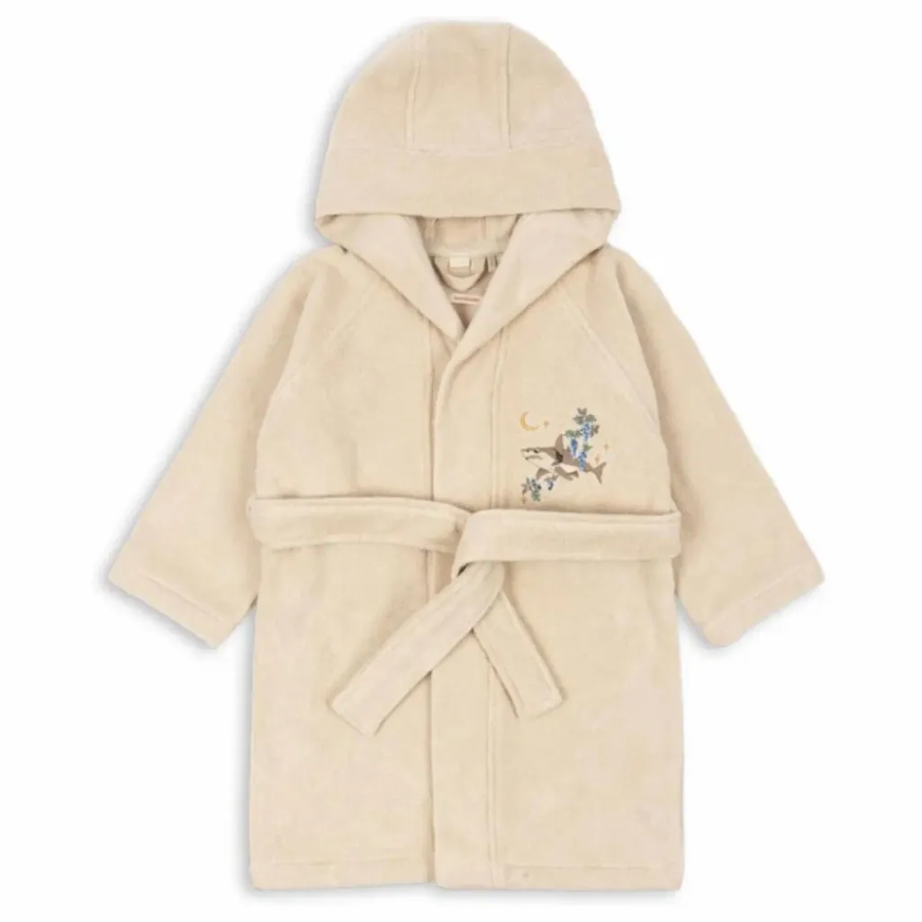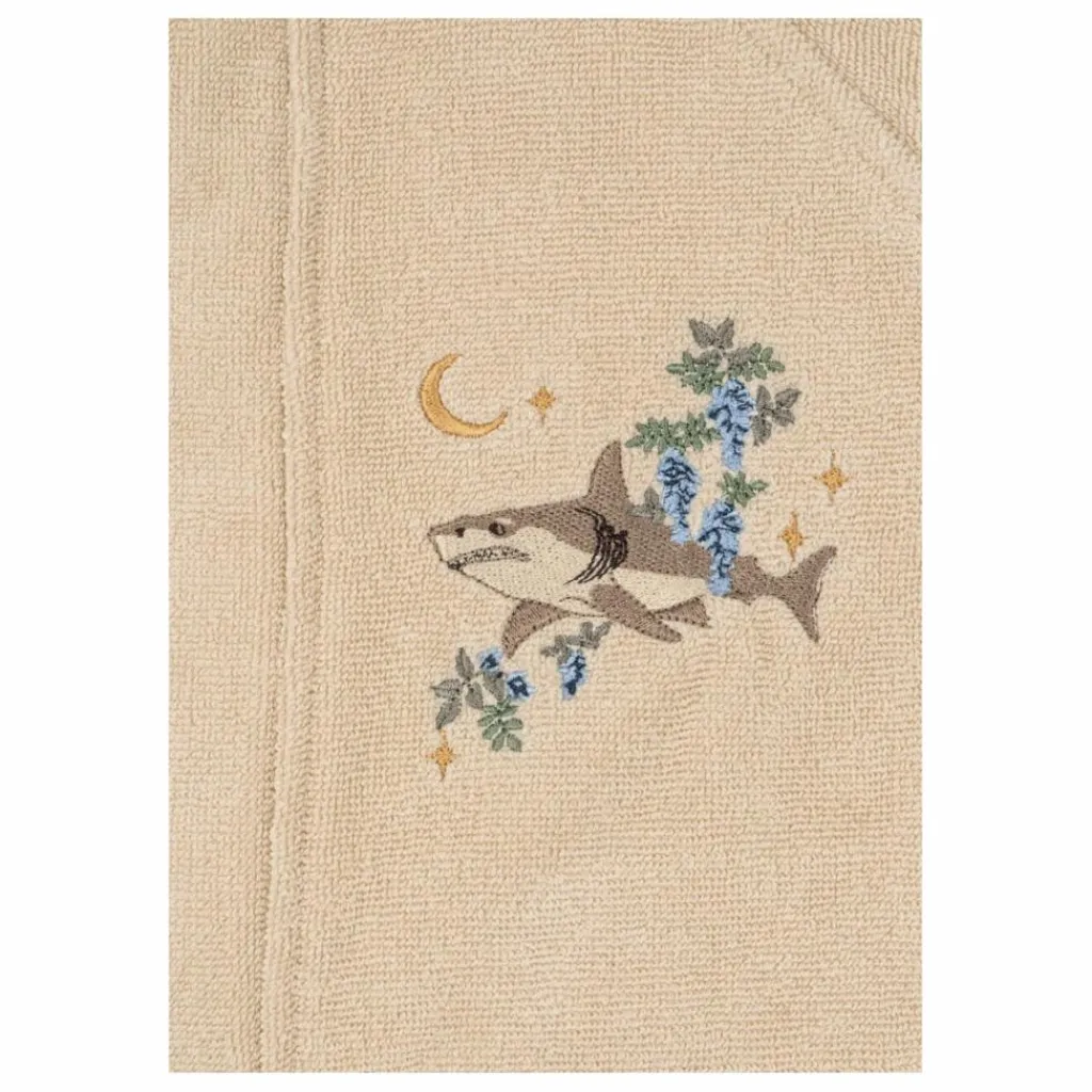 - La vente n’est pas autorisée aux États-Unis. Peignoir à capuche avec broderie décorative et ceinture amovible. Matière : 100% coton biologique. GOTS, biologique, certifié par CU1094701. Ce produit est certifié OEKO-TEX® STANDARD 100, classe 1 par DTI Tekstil, DTI 2276-361.