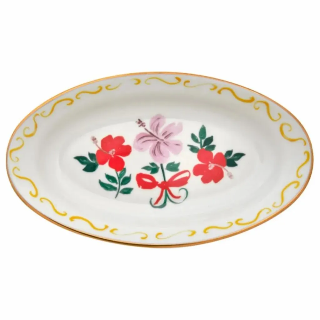 - plateau ovale avec décalcomanie et détails dorés, décorations appliquées à la main et détails dorés