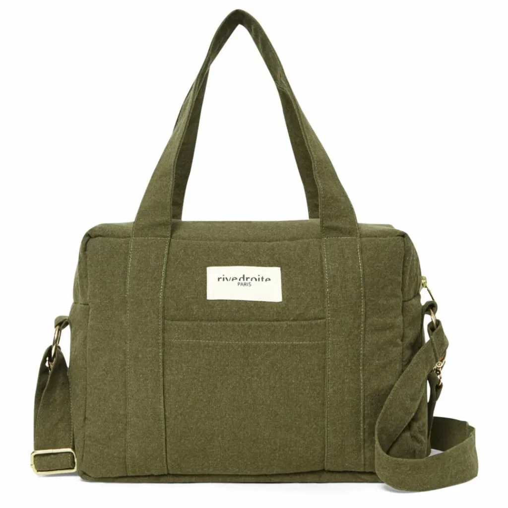 - Poche extérieure plaquée sur le devant du sac pour glisser son téléphone, poche intérieure plaquée pour les couches, et une poche resserrée par un élastique pour le biberon. Anse réglable pour le porter à l’épaule ou en bandoulière.